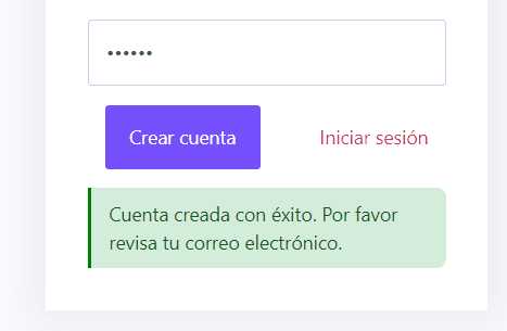 Al crear cuenta aparece el mensaje siguiente: