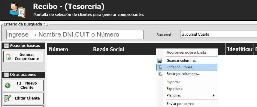 Para que no haya confunsión en ambas sucursales, el cliente desea agregar otra columna que sea «Sucursal» para ello debera ir a: