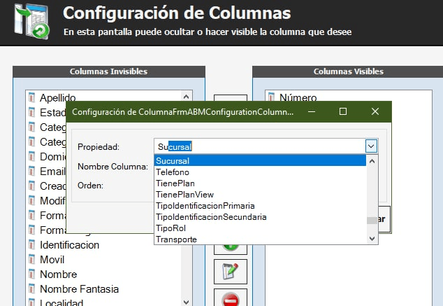 - Luego, se nos abrira otra pantalla, como la que vemos a continuación. En el campo «Propiedad» buscamos el nombre «Sucursal» y guardamos la pantalla.