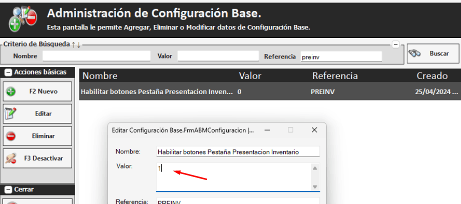 - Configuración – Configuración General y presionamos el botón BUSCAR y colocamos el valor=1, como mostramos en la imagen. Por último, guardamos la pantalla.