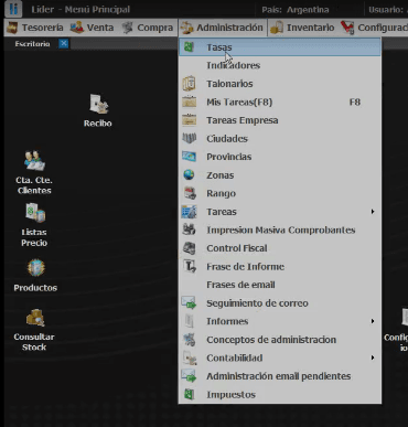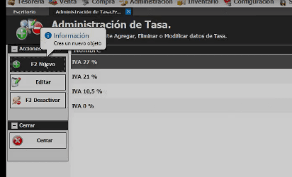 - Cargamos los impuestos: Desde Administración -> Tasas le añadimos los impuestos internos correspondientes
