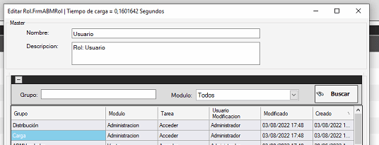 Para habilitar el módulo de Distribución vamos a editar el rol correspondiente y le añadimos Distribución y Carga, como en esta imagen.