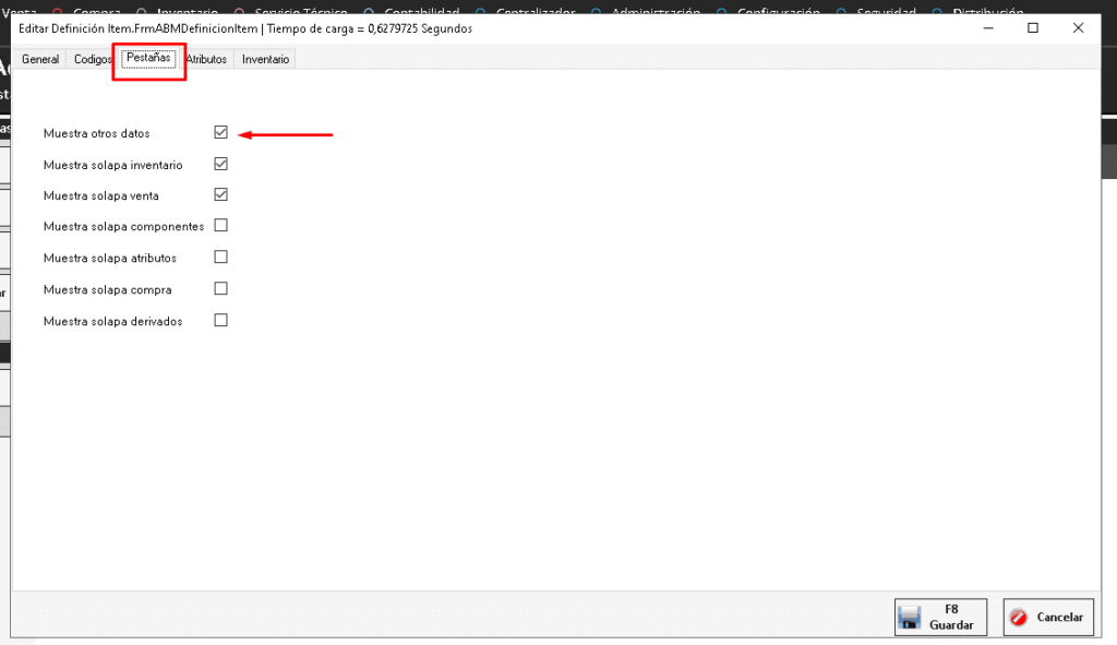 3 – Agregar la solapa en productos de «Otros Códigos» desde Configuración > Definición de Item, Seleccionamos General y presionamos en Editar.
