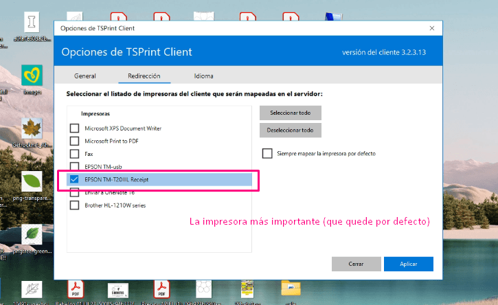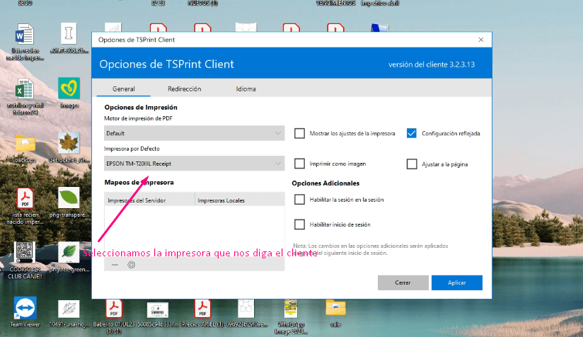 Luego seleccionamos la impresora que nos diga el cliente que tiene que imprimir con esta computadora: