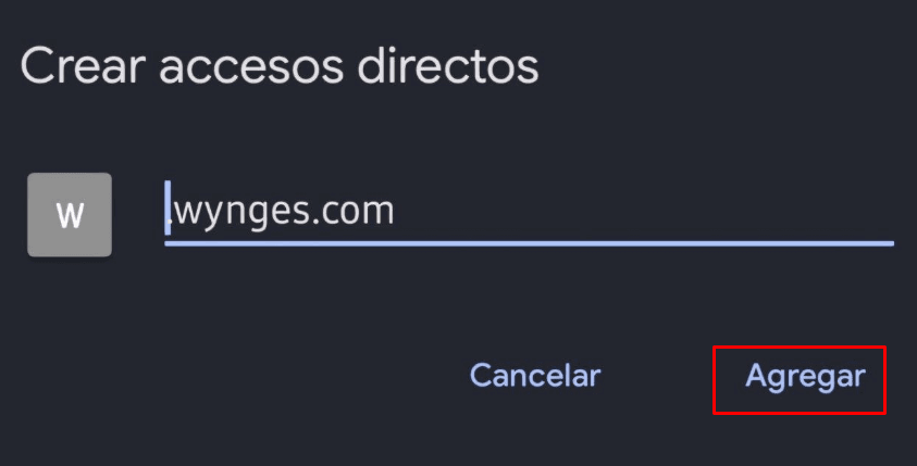Luego, le colocamos el nombre que deseamos y presionamos en «AGREGAR» y de este modo, tendremos el acceso directo a líder móvil en el celular.