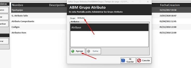 Seleccionamos la parte de atributos en la ventana de TipoEquipo que se nos abre y le damos en agregar.