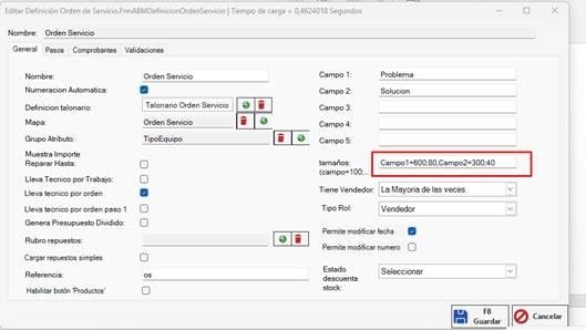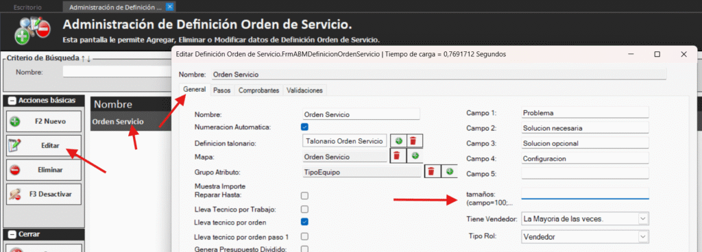 Para modificar los tamaños de los campos de la orden de servicio nos dirigimos a la siguiente ruta: