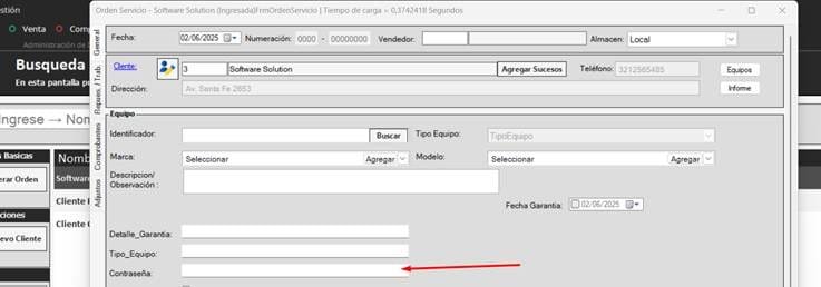 Una vez hecho estos pasos vamos a ingresar una orden y podemos observar que el atributo a sido añadido.