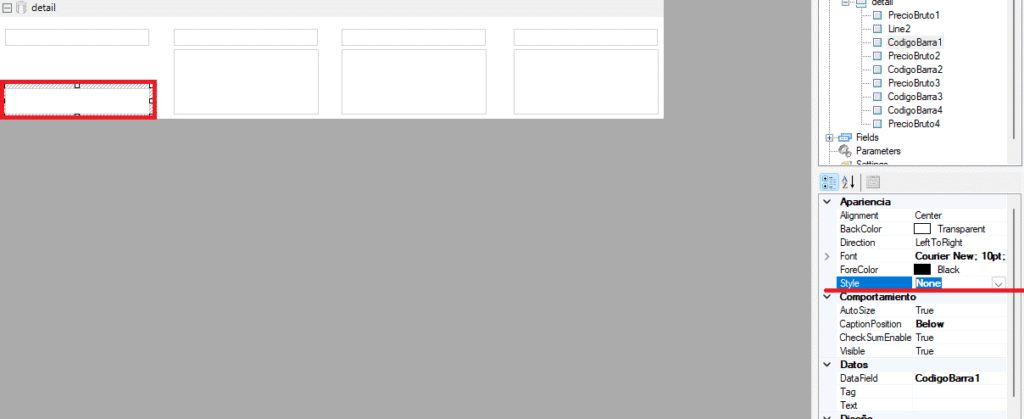 - Seleccionamos el campo del código de barra y realizamos la siguiente configuración