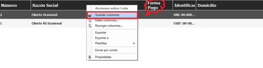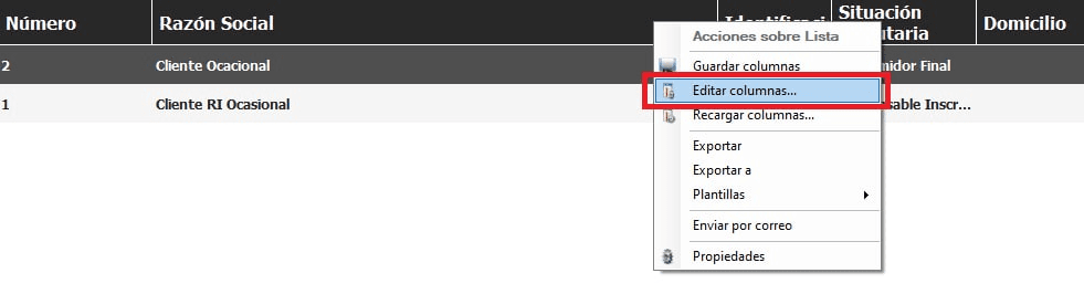 Para editar las columnas y elegir la que el cliente desea ver, tenemos que hacer click botón derecho y «editar columnas»