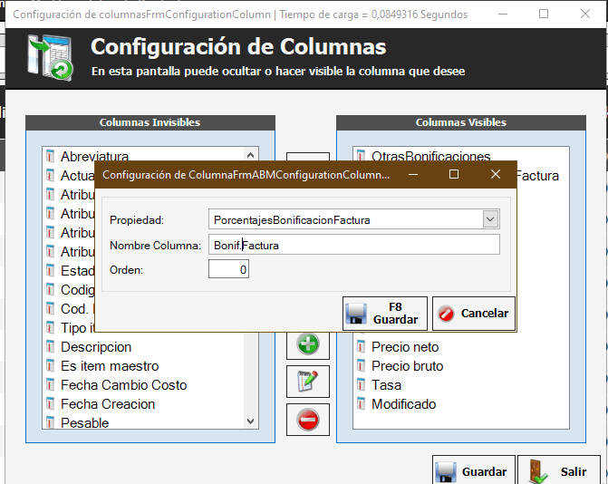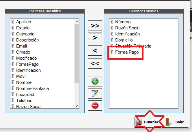 Como podemos observar en la imagen, la columna que seleccionamos se ve reflejada, hacemos click en «Guardar Columnas»