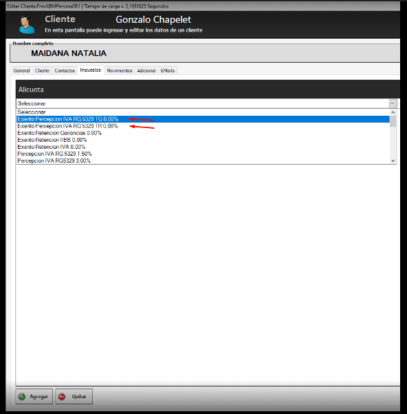 A veces hay clientes que son exentos a ciertos impuestos, en este caso vamos a ver como poner a un cliente para que sea exento del impuesto «PERCEPCION IVA RG 5329».