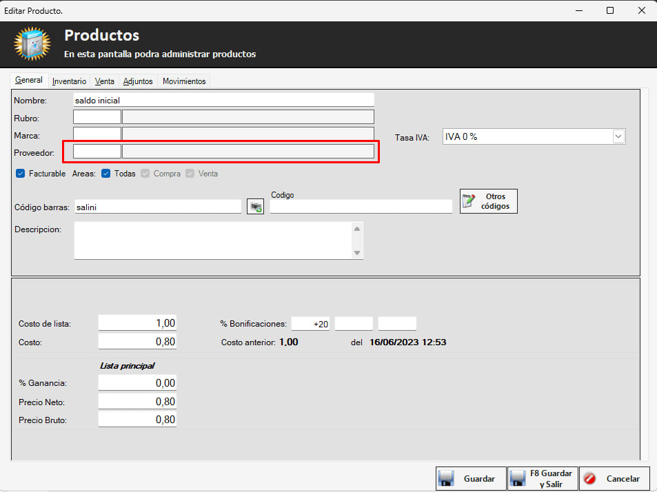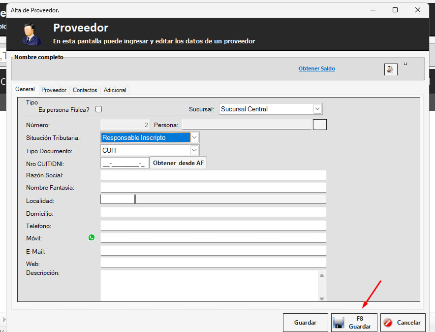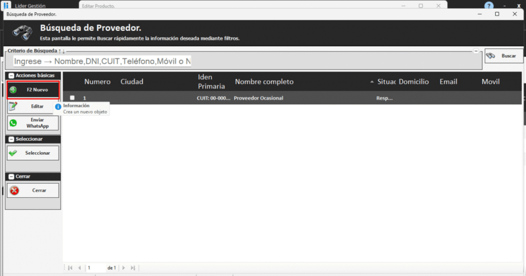 - Luego, selecciona en alguno de los 2 campos del proveedor y presiona la tecla ENTER.