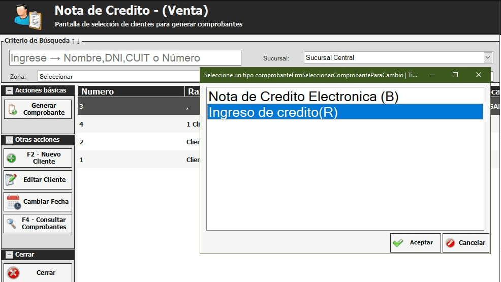 Los ajustes de saldo en las cuentas corrientes se hacen a través de notas de crédito y notas de débito. Para ello se deberá ir a «Venta → Facturación electrónica → Nota de crédito / Nota de débito». Una vez ahí se busca el cliente y pincha el botón «Generar comprobante», se selecciona «Ingreso de [crédito / débito](R)» para hacer el ajuste correspondiente.