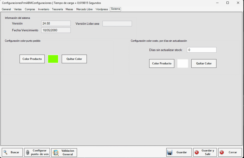 Tenemos la posibilidad también de poder visualizarlo en el inventario colocándole COLOR, tenemos que configurarlo nosotros también. CONFIGURACIÓN->CONFIGURACIÓN GENERAL y dirigirnos a la solapa SISTEMA.