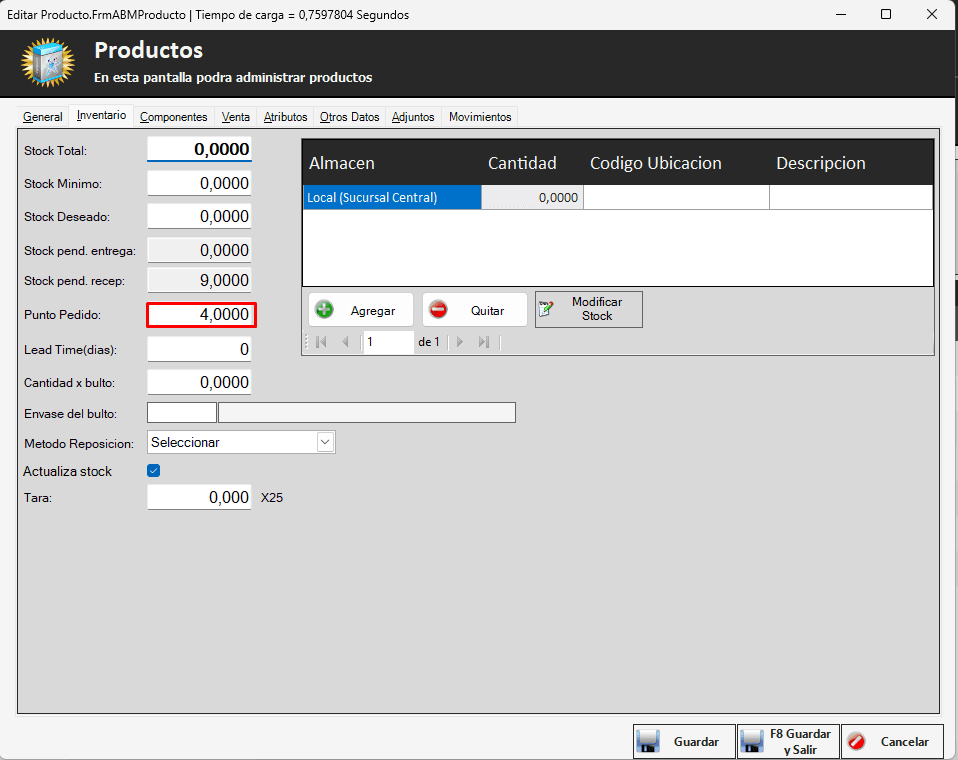 Tenemos la posibilidad tener dos tipos de alertas(No tiene carteles de alertas sino que son formas para visualizarlo) la primera que ya viene integrada con el sistema es un INFORME, que es a medida con los parámetros que el cliente coloca para saber cuando necesita Stock en los productos.