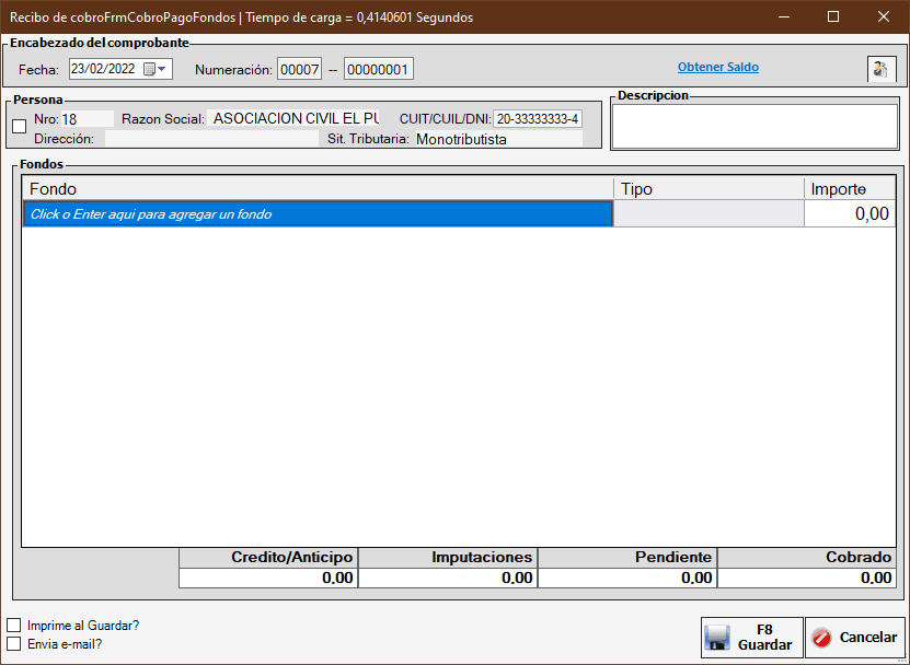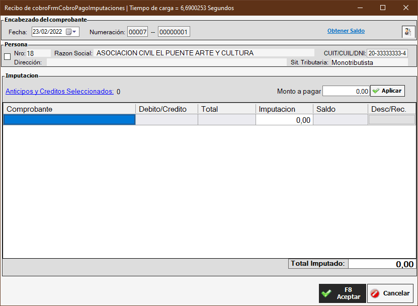 Para revisar que se añadió correctamente podemos ir a Tesorería -> Cobranzas -> Recibo, le damos a Generar Comprobante. Una vez ahí le damos a Aceptar