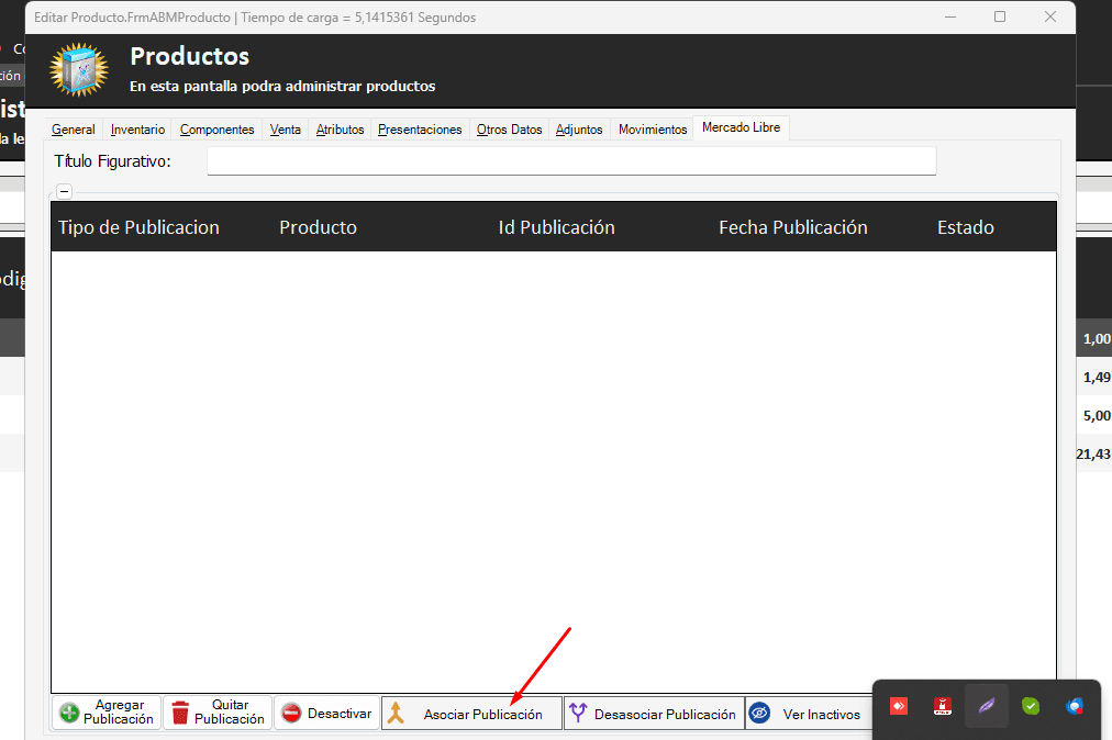 - Y desde la solapa mercado libre puede asociar la publicación desde el botón.