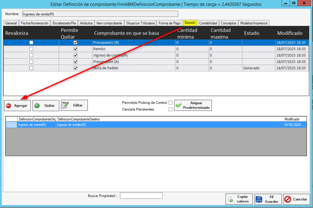 Una vez dentro de la ventana Editar, nos dirigimos a la solapa “Basado” y seleccionamos el comprobante para basarnos.