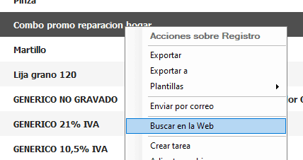 Aún así puede hacerle click derecho al producto solicitado y seleccionar la opción «Buscar en la web»