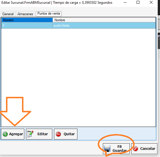 - Y en la solapa «Puntos de Venta» AGREGAMOS el nuevo punto de venta.