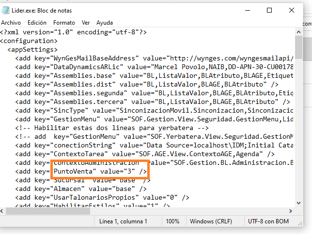- Luego, cerramos el sistema y nos dirigimos al Lider.exe.config