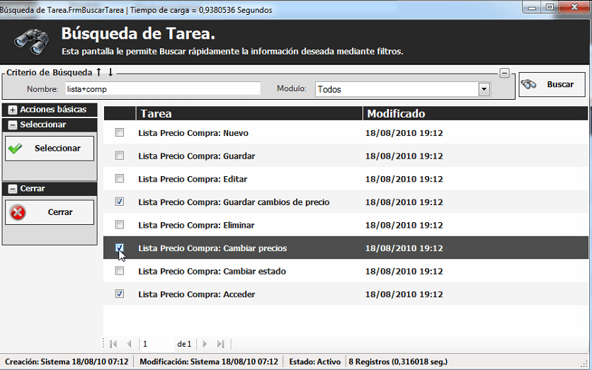Para habilitar este módulo, de sólo cambiar precios, debemos ir a Seguridad -> Roles, seleccionamos el rol que use el usuario y le damos a Editar Admin. Una vez ahí le damos a Agregar y añadimos los siguientes módulos: