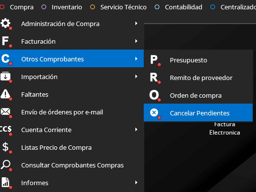 - Compras – Otros Comprobantes – Cancelar Pendiente