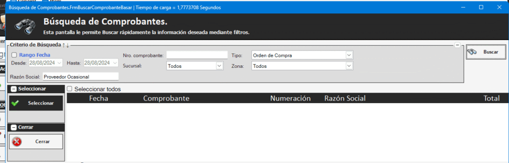 - Buscamos el comprobante y lo seleccionamos