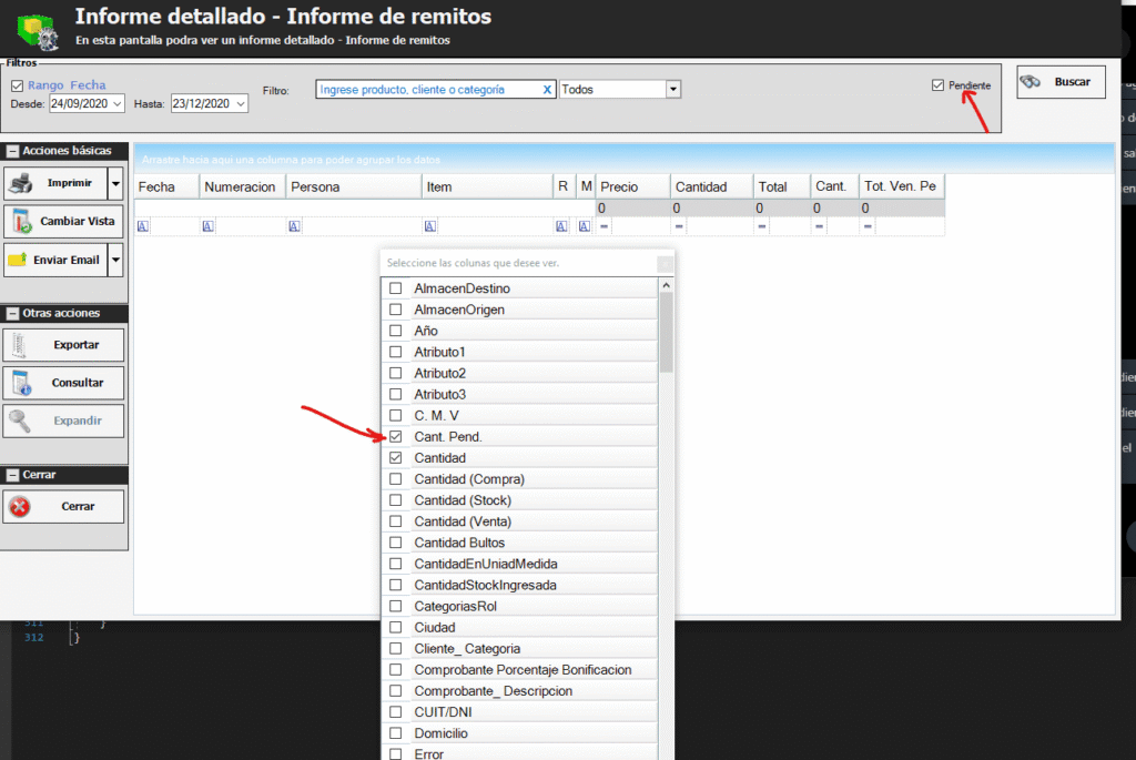 3.- Tildamos la columna «Cant. Pend.» y cerramos la ventana.