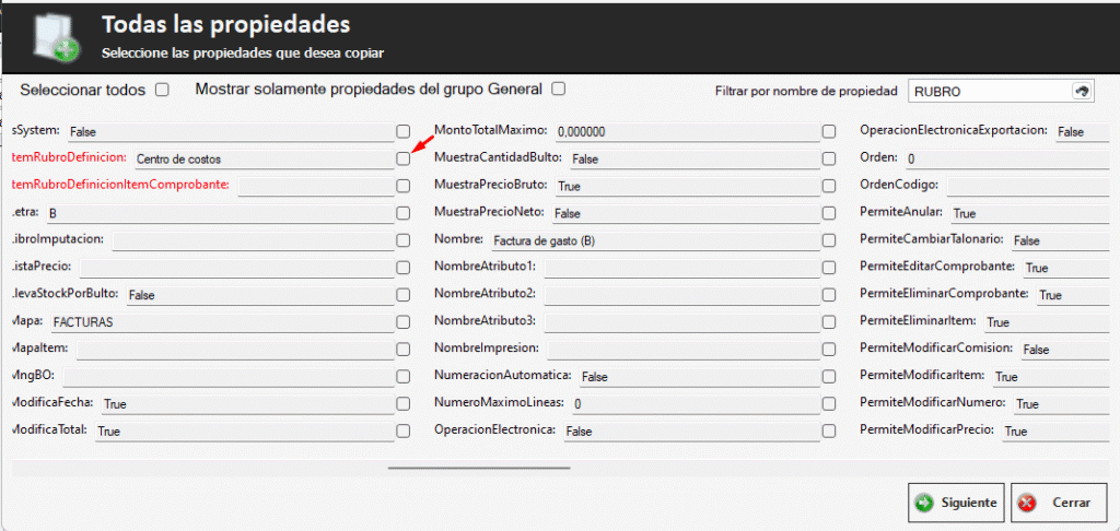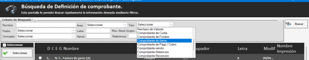 - Luego, presionamos en el botón SIGUIENTE y filtramos por comprobante de ítems