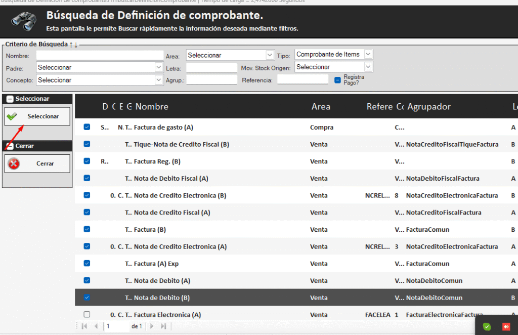 - Luego, vamos marcando TODOS LOS COMPROBANTES que aparecen