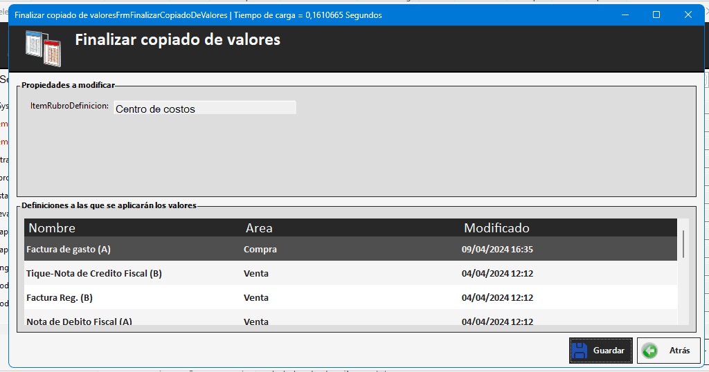 - Luego, nos dirigimos debajo del comprobante y presionamos en COPIAR VALORES