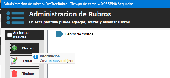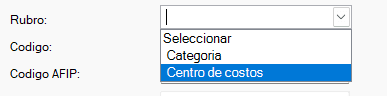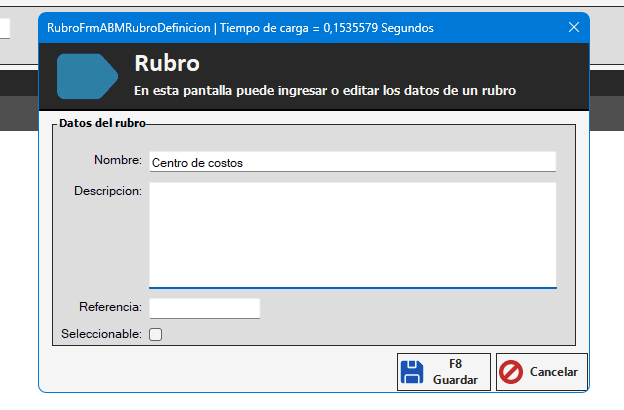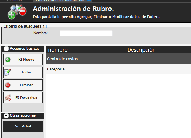 Y creamos un rubro llamado CENTRO DE COSTOS y guardamos pantalla