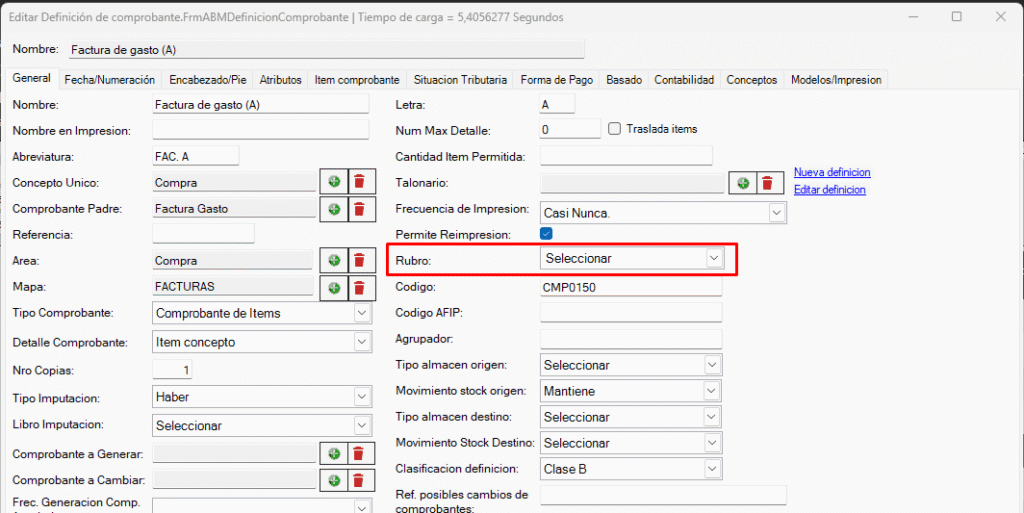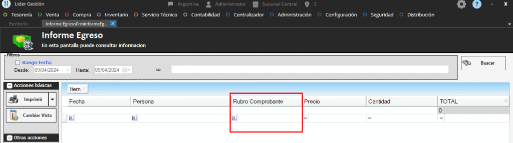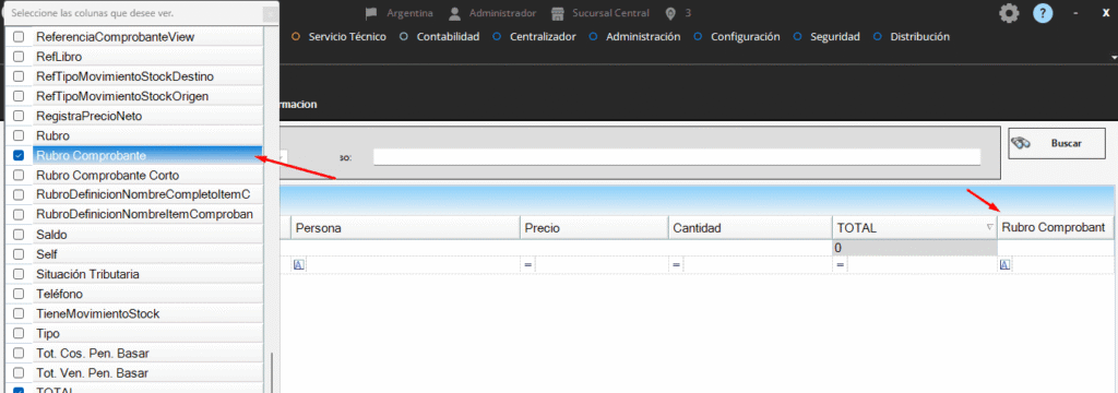 Luego, en todos los informes de VENTA Y COMPRA agregamos el campo RUBRO COMPROBANTE y guardamos la vista