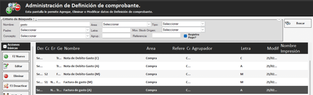- Configuración – tipo de comprobantes. Seleccionamos cualquier comprobante: venta o compra (esto es según la oportunidad del CRM, puede ser ambos o uno de los 2)