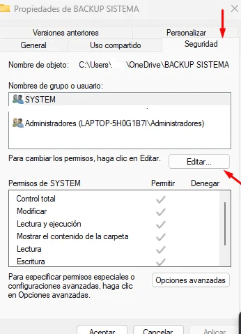 Y desde la solapa «seguridad», presiona en EDITAR