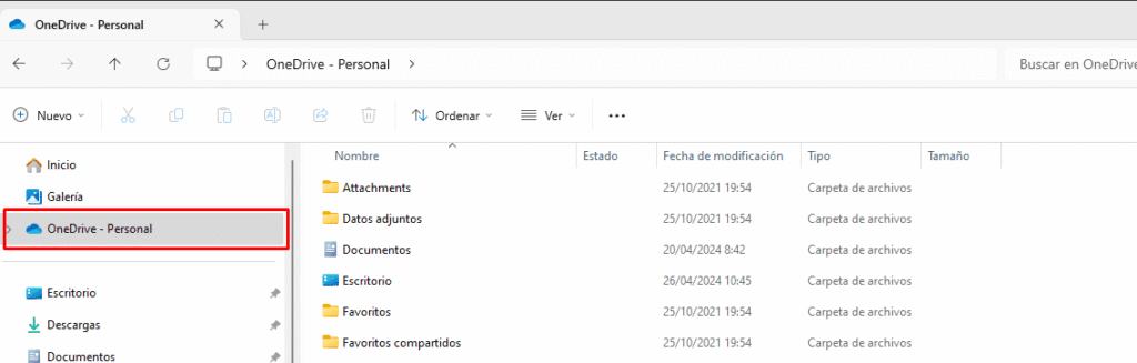Luego, buscamos «OneDrive – personal»