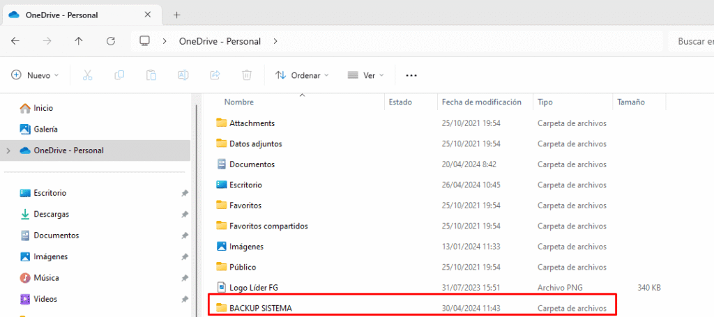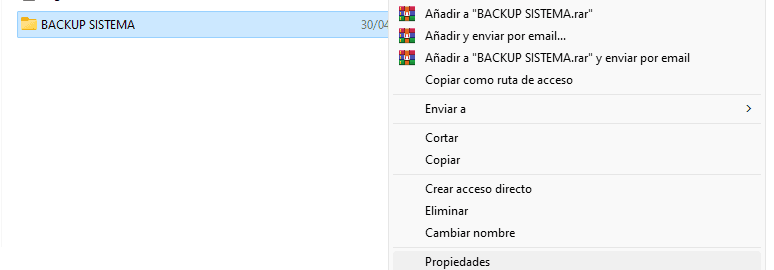 Y dentro de esa sección creamos una carpeta que se llame «BACKUP SISTEMA» o podemos colocar el nombre que preferimos. Para ello hacemos click botón derecho «nuevo» y luego, «nueva carpeta»