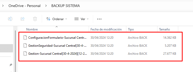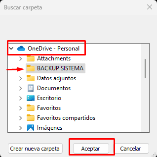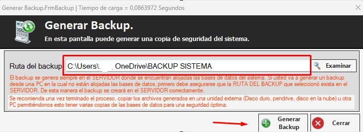 Cada vez que genere un backup del sistema se le va a guardar en el OneDrive (NUBE)