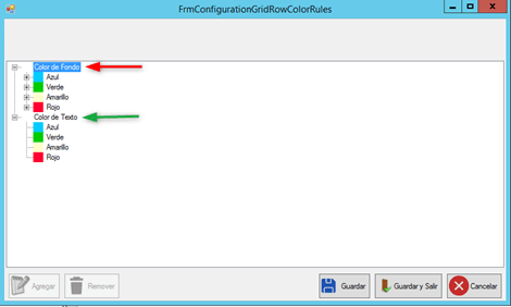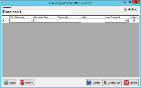Para configurar los disparadores, utilizamos el botón “agregar”, seleccionando el color a parametrizar. También podemos quitar disparadores ya configurados, a través del botón “Remover”.