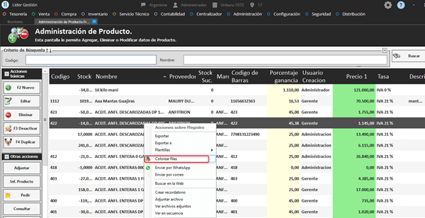 Líder Gestión nos permite colorear columnas, de acuerdo con criterios que necesitemos resaltar.