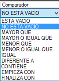 1. Comparadores de tipo campo “vacío/no vacío”, útil cuando queremos detectar información incompleta;