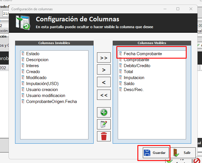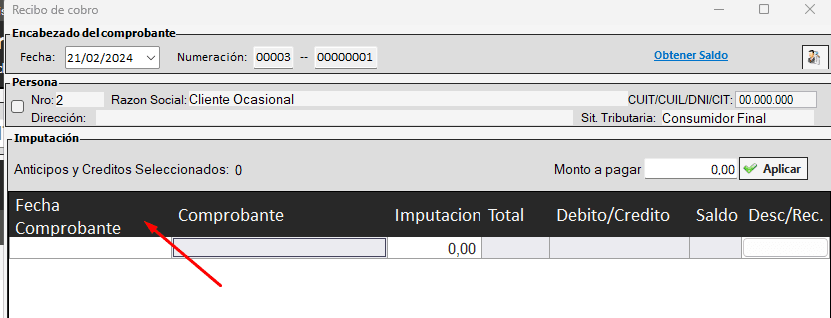 Y de ese modo, queda agregada la columna de FECHA DEL COMPROBANTE (es la fecha del comprobante que va a basar en el RECIBO)