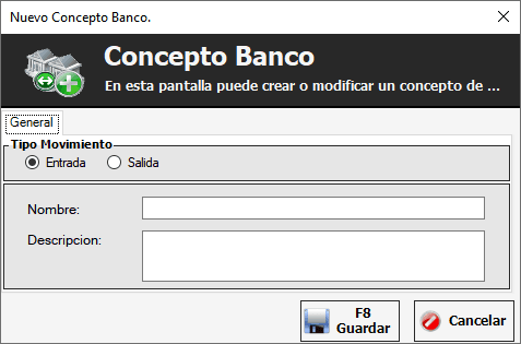 Para crear un nuevo concepto de banco debemos seleccionar la opción «Nuevo».