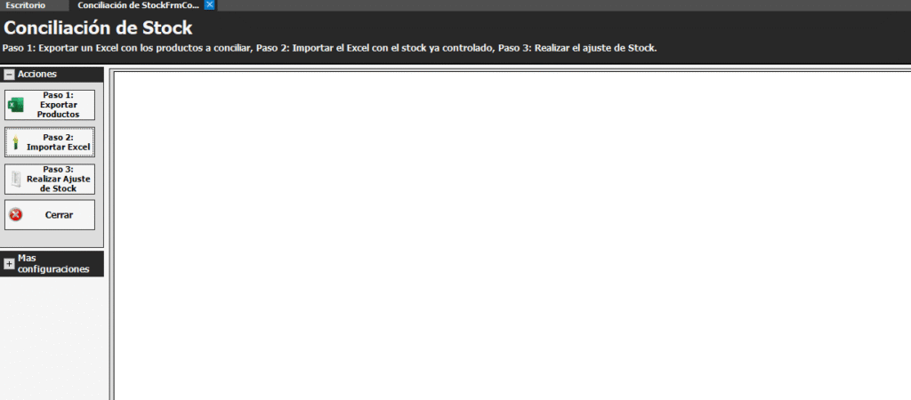 Paso 3: Realizar Ajuste de Stock: Por ultimo paso el sistema saca la diferencia entre el stock real y stock del sistema. Genera un ajuste en caso de diferencia.