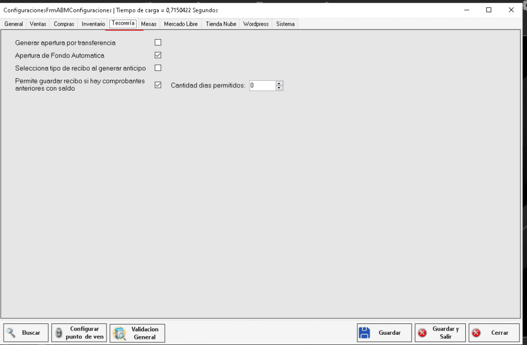 Para hacer esto nos vamos a Configuración > Configuración General > y nos dirigimos a la solapa de «Tesorería»