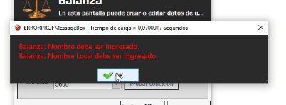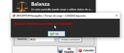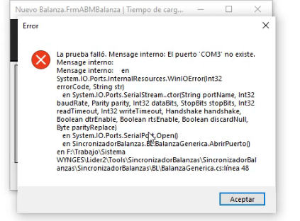 Si arroja alguno de los siguientes errores es muy probable que la balanza esté desconectada o no lo esté en el puerto correcto