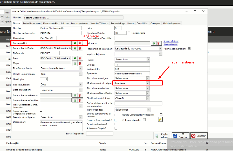 - Configuración – tipos de comprobantes, seleccionamos el comprobante y tildamos en DUPLICAR