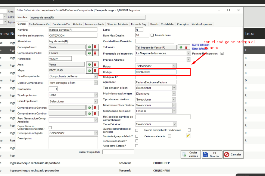 - Buscamos el ingreso de venta R, copiamos el CODIGO
